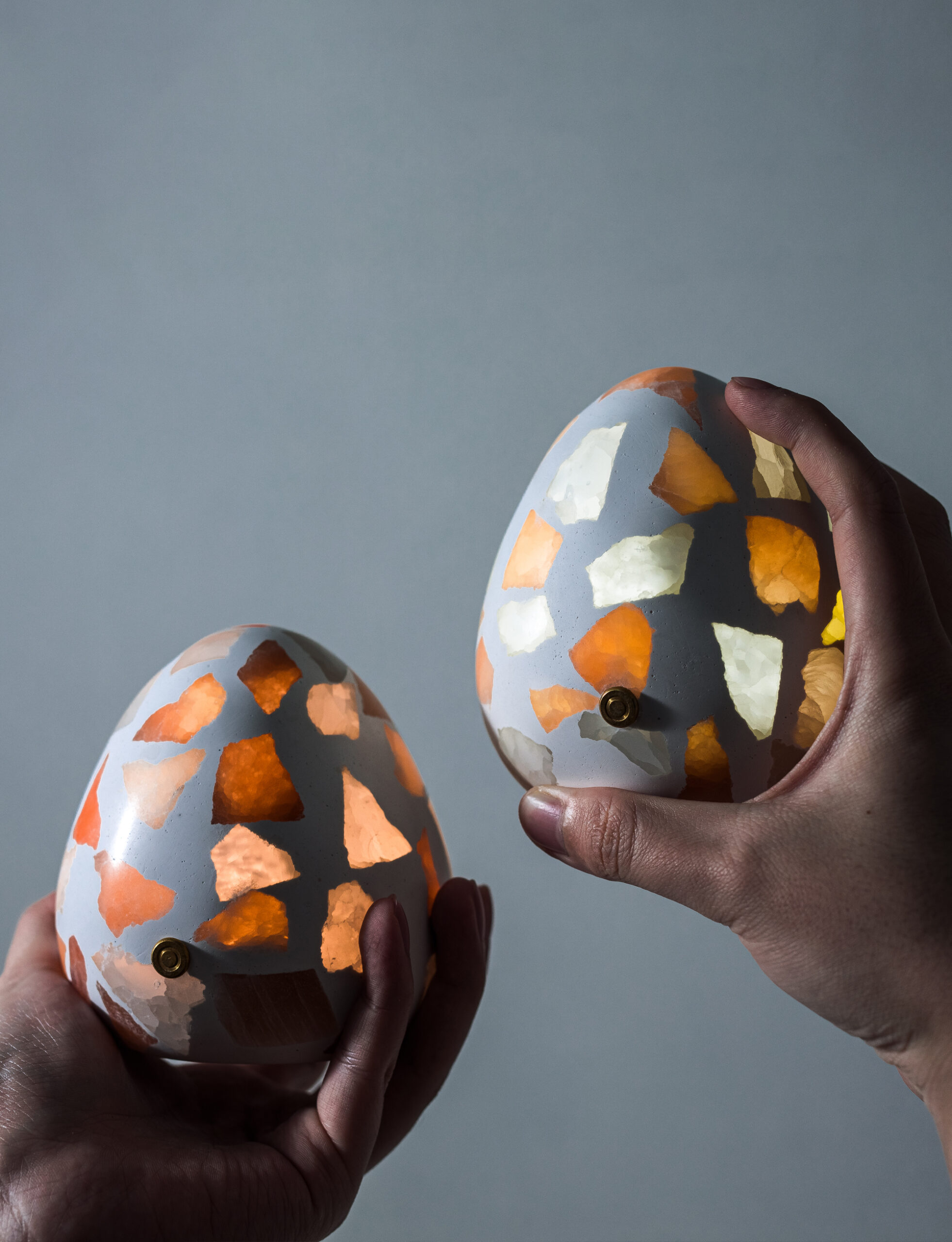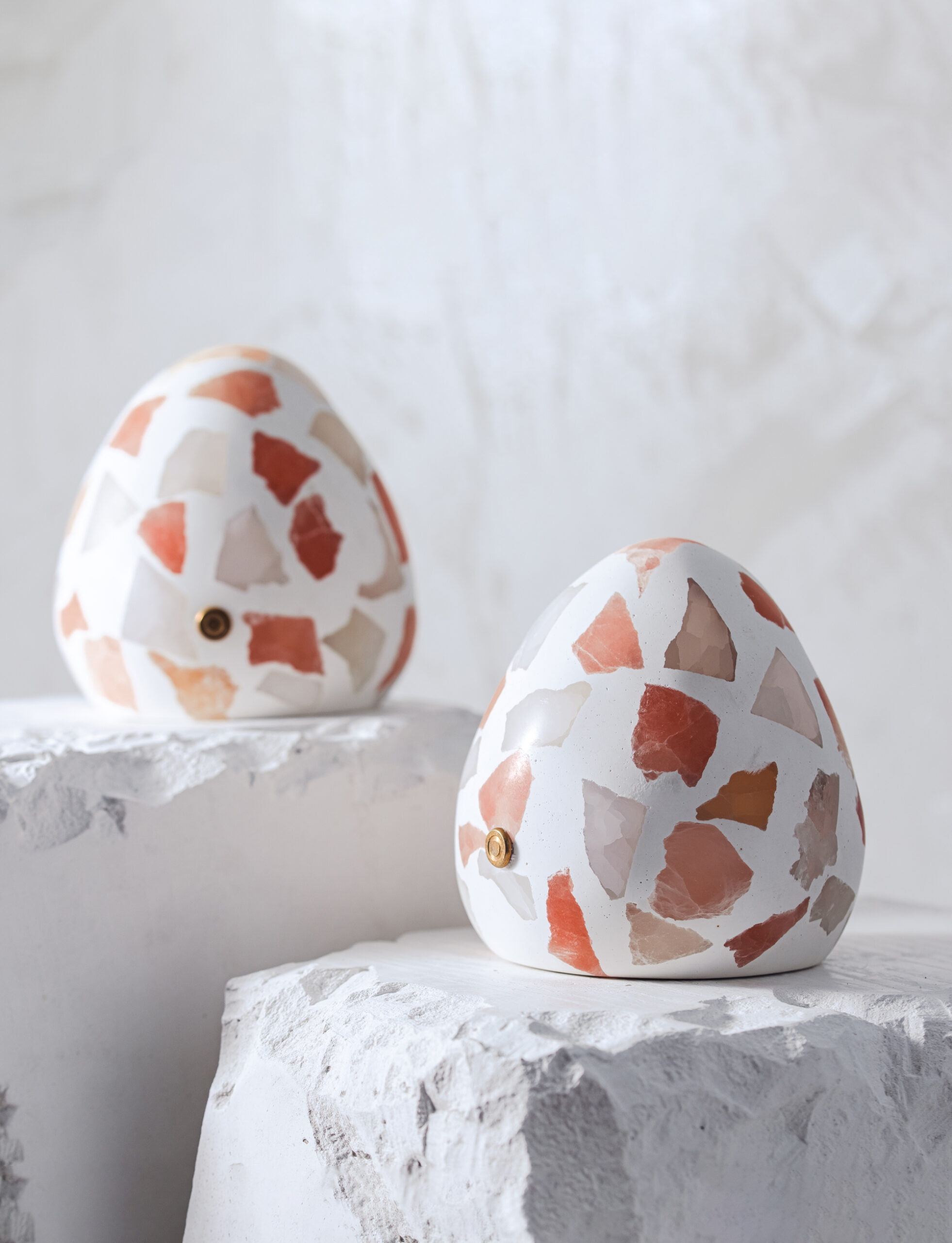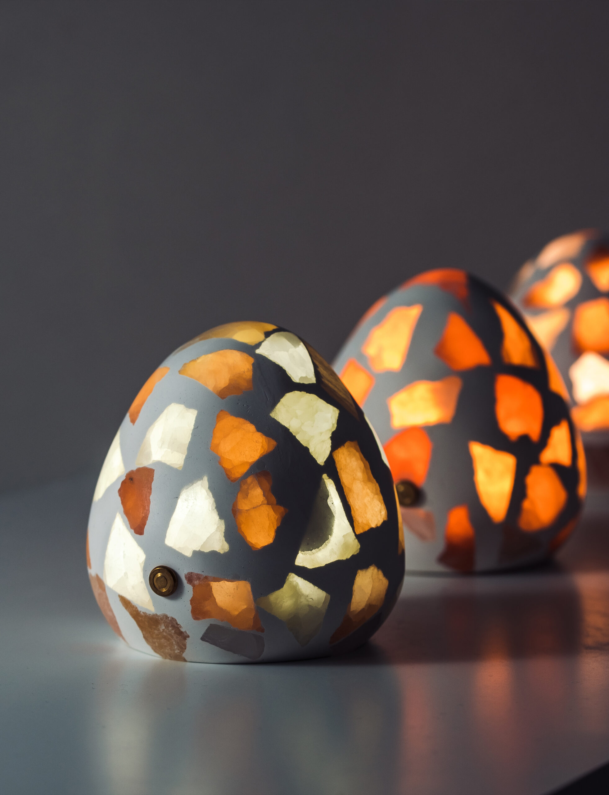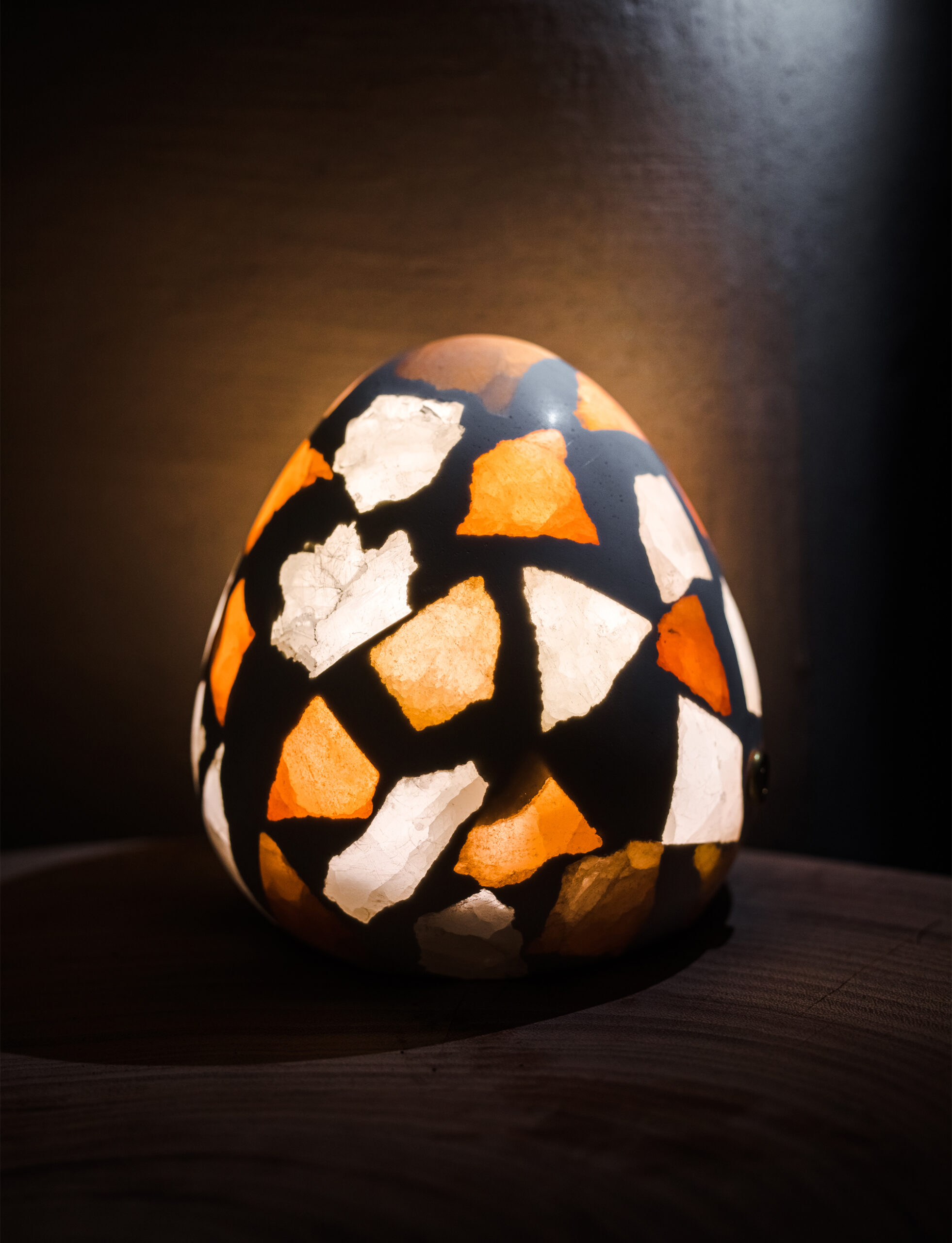 Clusters of uneven mineral fragments lie suspended within the body—some crystalclear, others muted or fully opaque—creating a mosaic of shifting translucency.