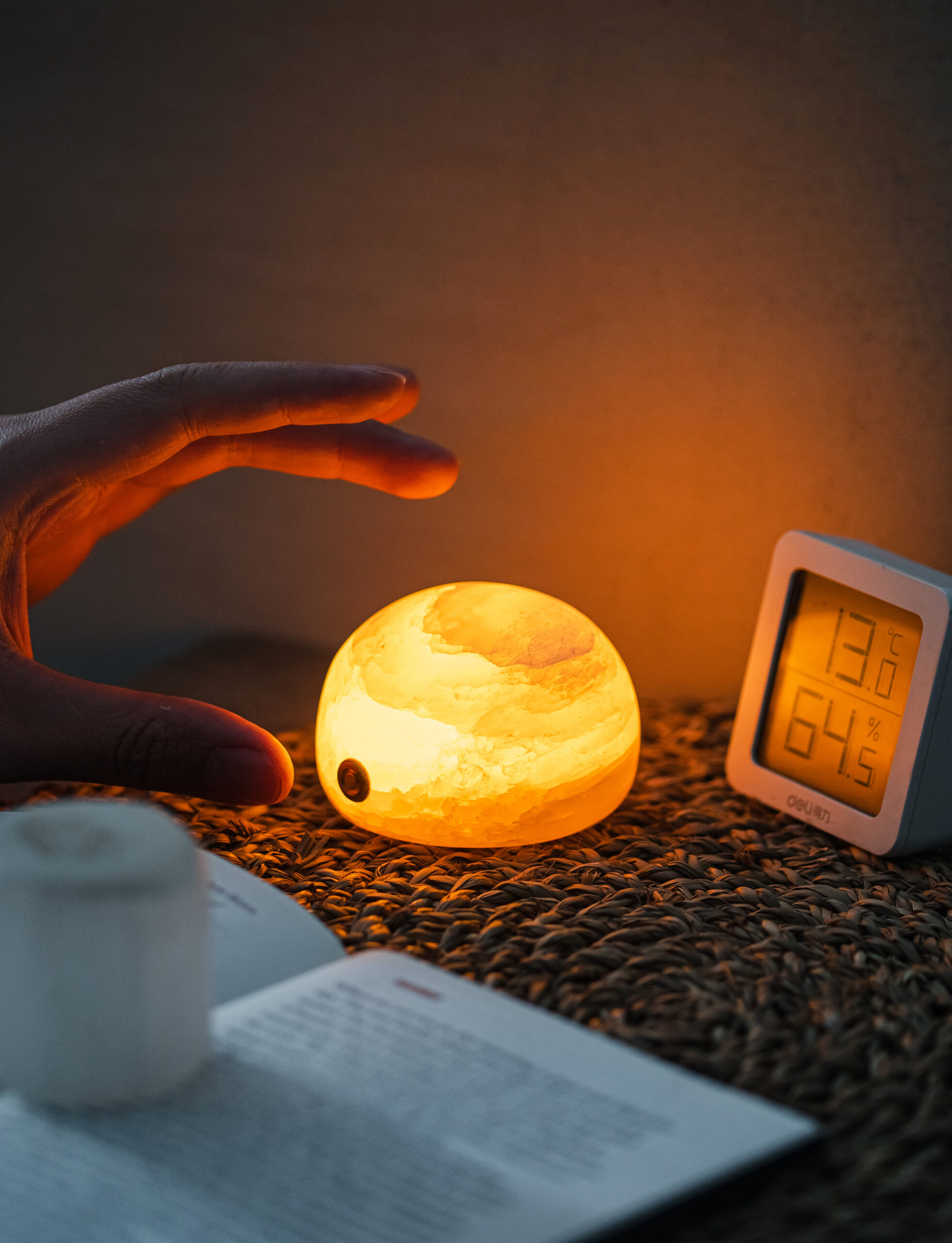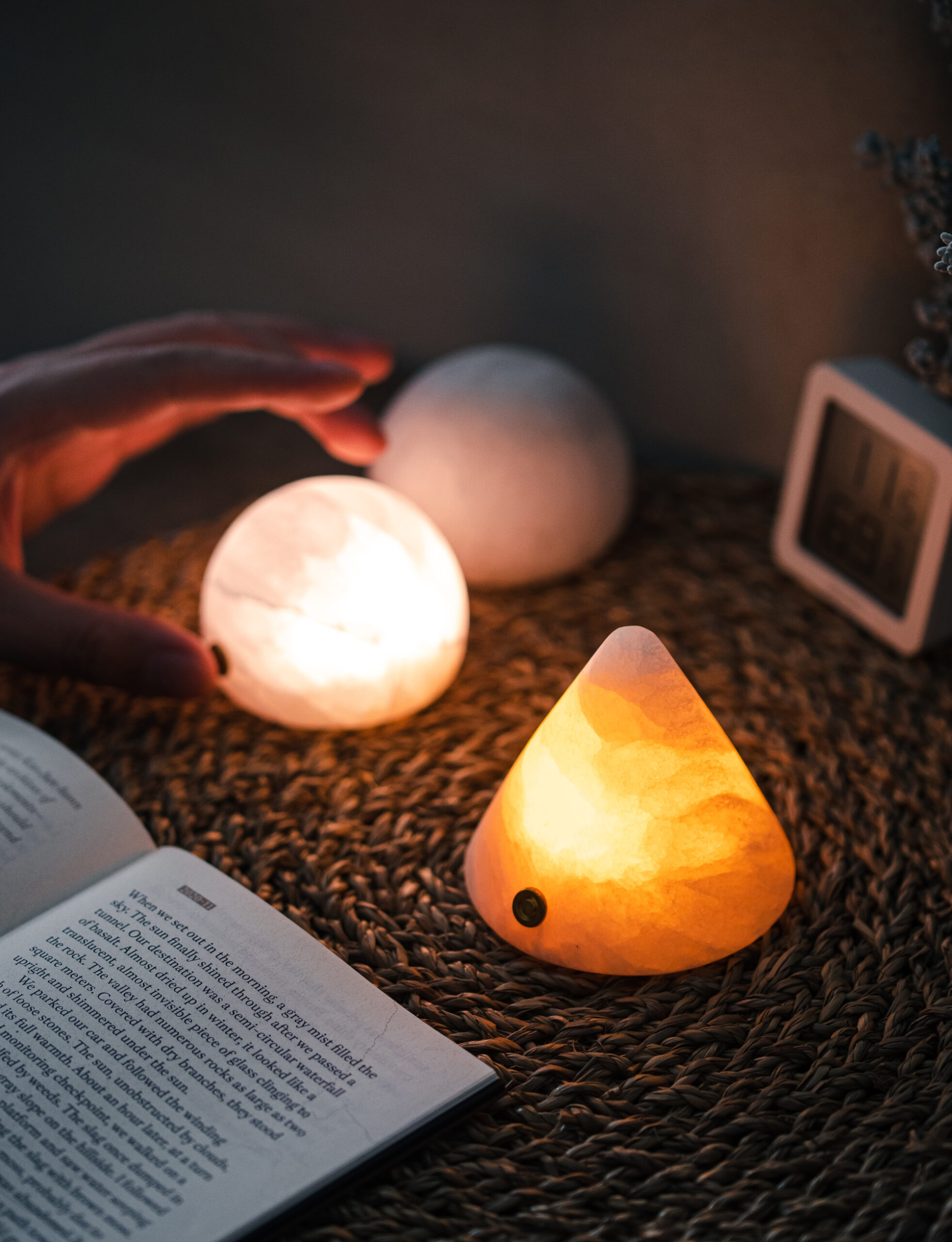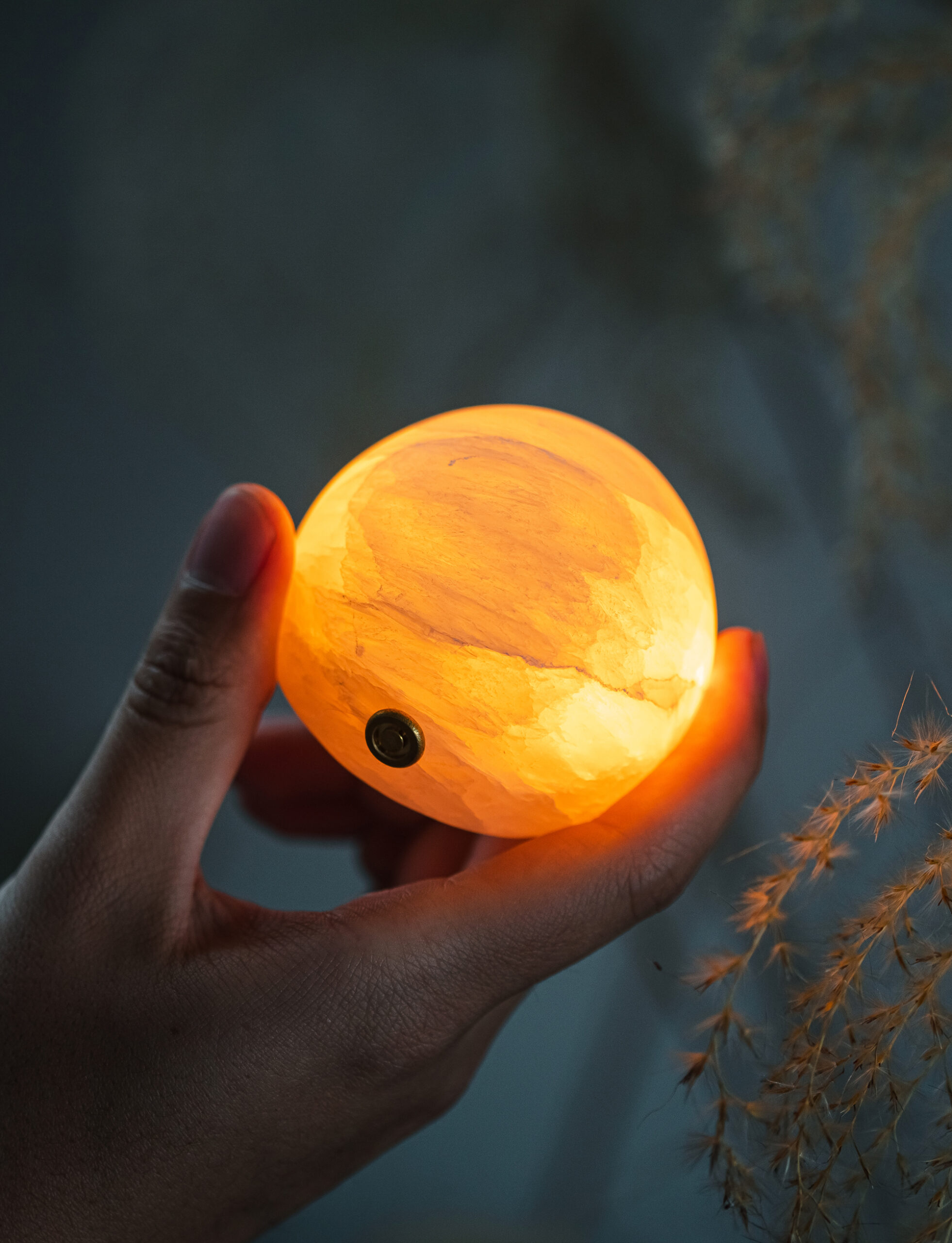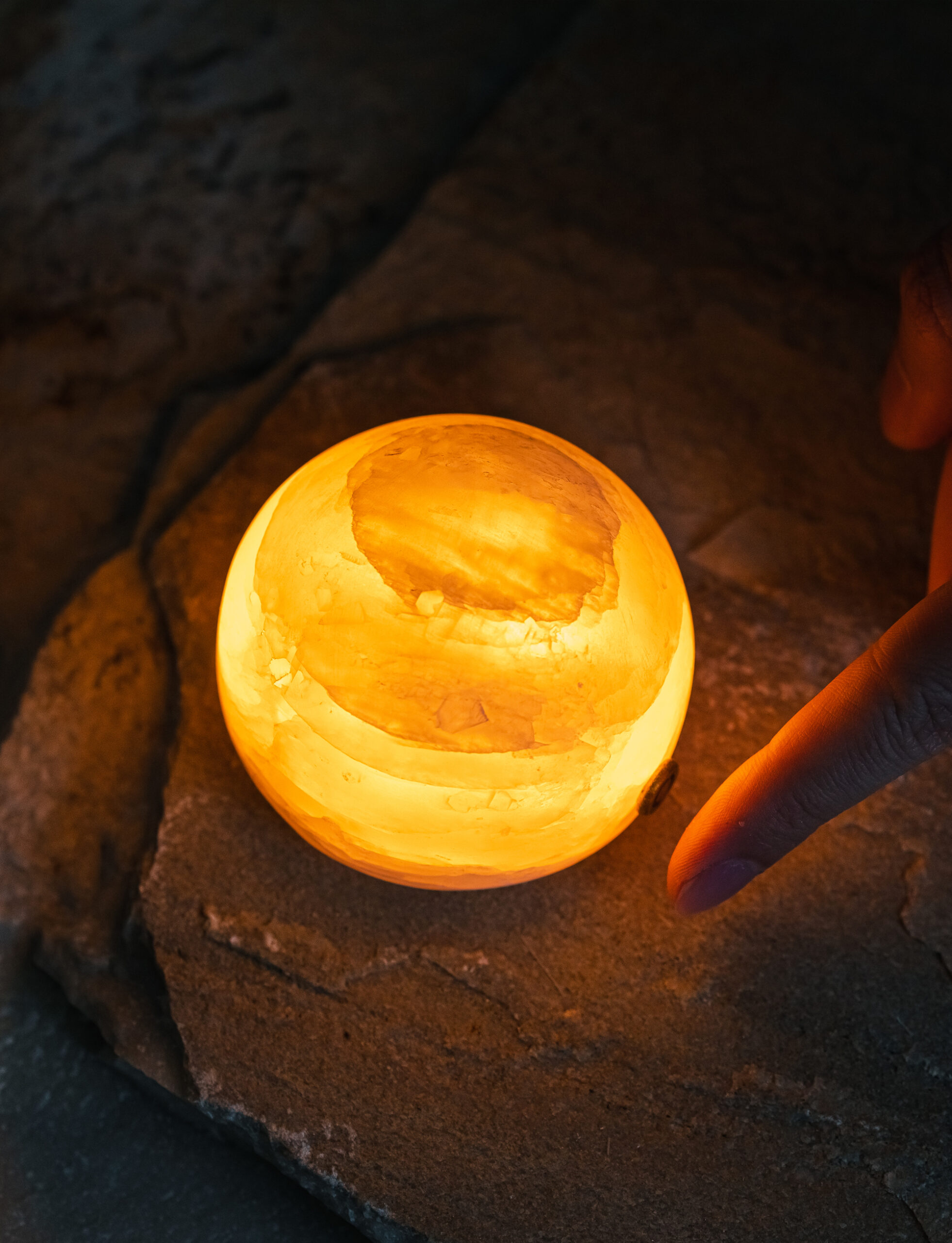Each lamp is sculpted from a piece of natural mineral stone, carefully polished to a rounded, full-bodied form. The semi-translucent surface glows with a soft, misty sheen, while subtle variations in color and veining reflect nature’s quiet artistry.